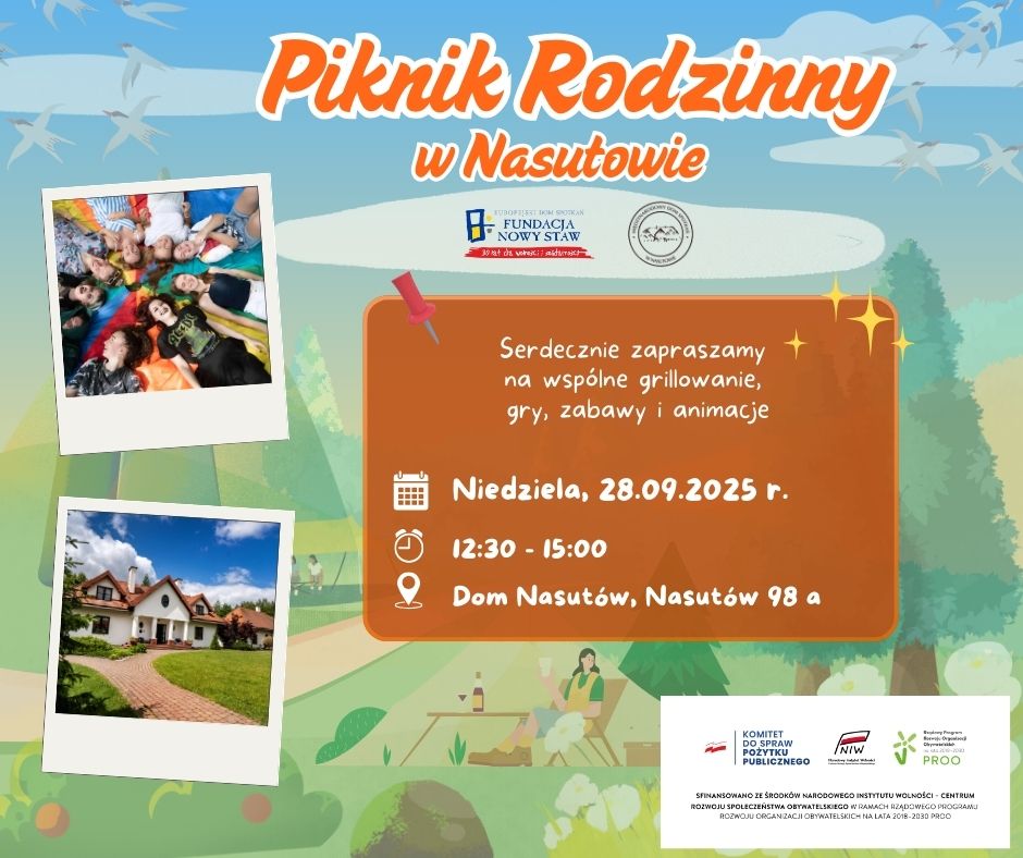 Dołączcie do nas w niedzielę, 28 września 2025 r., w godzinach od 12:30 do 15:00 na terenach zielonych Domu Nasutów.